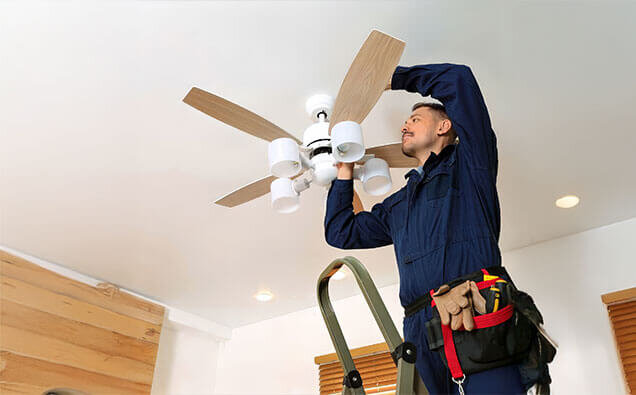 Professional adjustment and balancing of ceiling fans to eliminate wobbling and noise, ensuring smooth, quiet operation year-round.